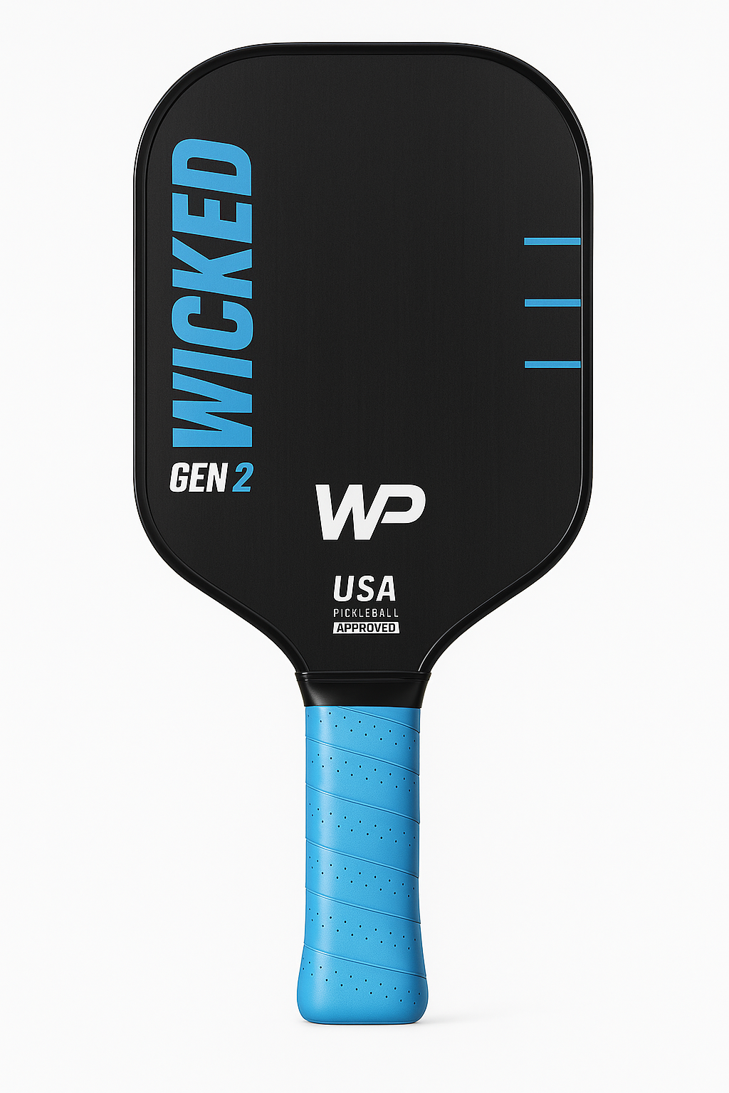 The Wicked GEN2 paddle offers a perfectly balanced, tournament-grade feel, highlighted by clean white edges that bring a modern, refined look. Its precision-built core delivers exceptional control, while the micro-textured surface enhances spin and grip for unmatched accuracy. The bold color contrast against the white trim is more than eye-catching, it reflects its elevated level of performance. From delicate dinks to explosive drives, this paddle fuses finesse, power, and sophistication in one elite package.